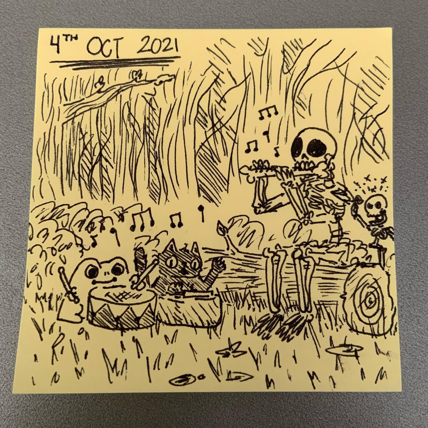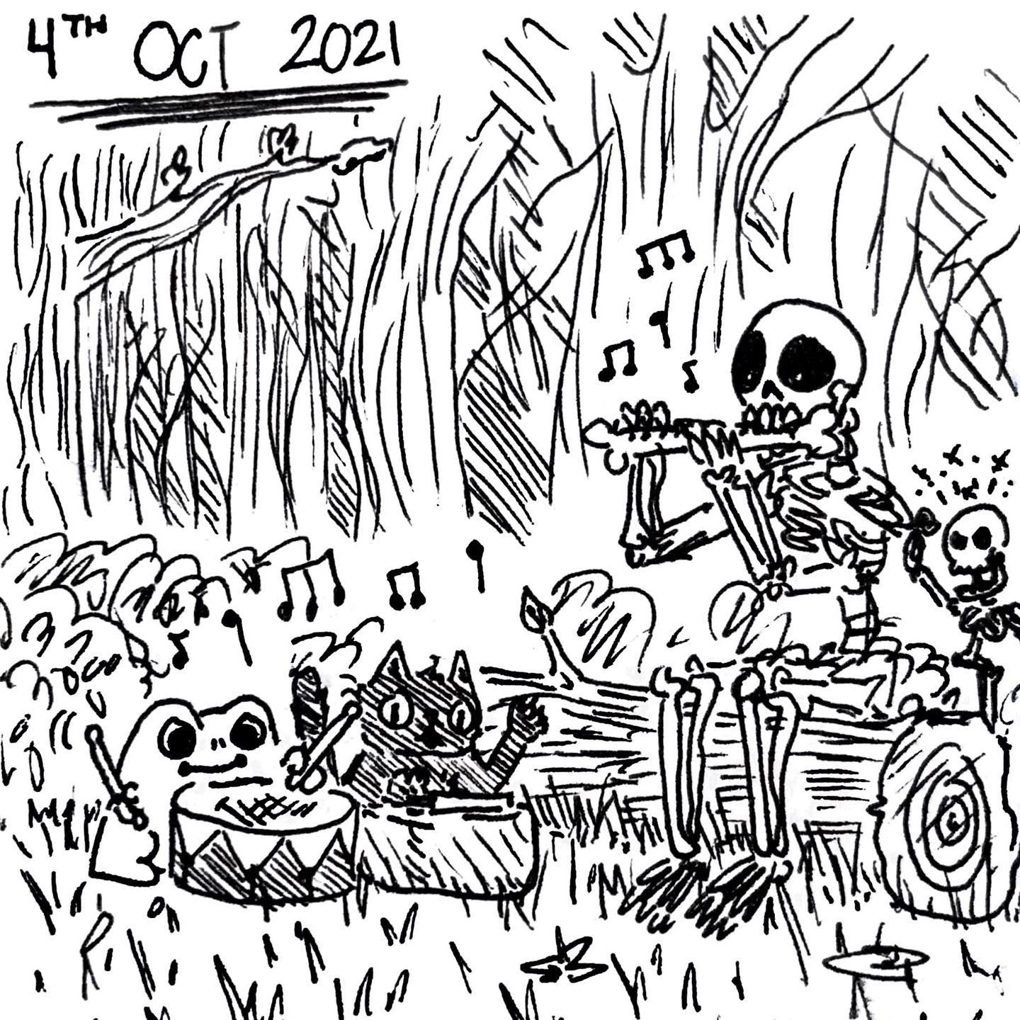 Inktober Day 4!!!! ââââââââââââ Whoâs playing the best???ð¥ºð¥ºð¥º - just kidding theyâre all playing so good! Also Fred may have stolen someoneâs femur to use as a flute. #Whoops! #sorrynotsorryaboutyourfemur #Inktober #Inktober2021 #inktober2021day4