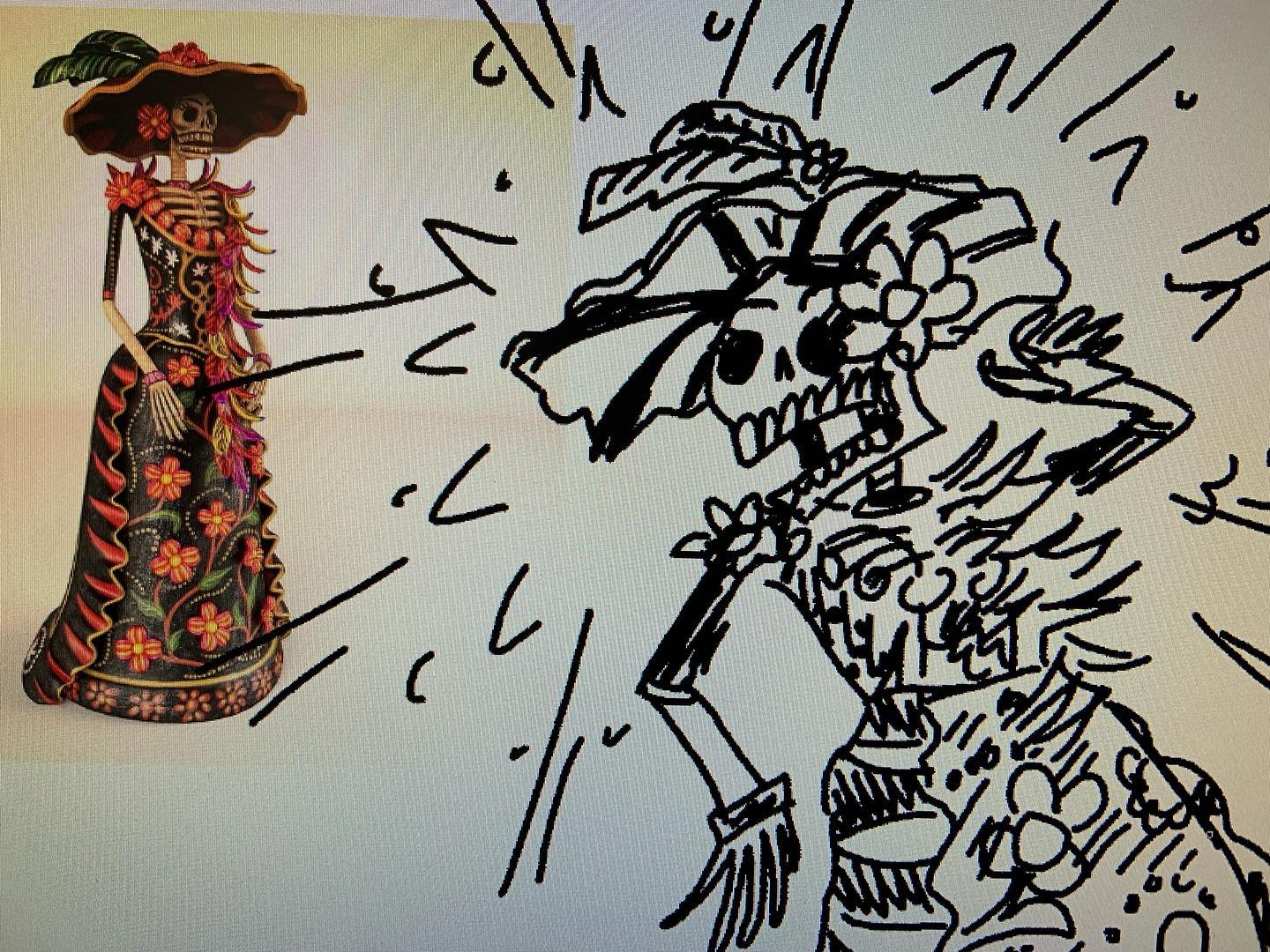 I was going to write a caption about the history behind La Catrina but because I keep learning new things every time I try and fact check myself how about I just tell to you to read about La Catrina because it has a cool history that ties into the Mexican Revolution and of course Dia de Los Muertos. I will say that one thing I thought was really interesting was that La Catrina started off as a caricature by Jose Guadalupe Posada that poked fun at indigenous Mexican women who tried to pass as European through extravagant clothing. Apparently Posadaâs whole thing was that âDeath is Democraticâ and he loved illustrating skeletons, laughing at death, and reminding us that weâre all equal in the end. Enjoy this quick silly sketch of La Catrina! #diadelosmuertos