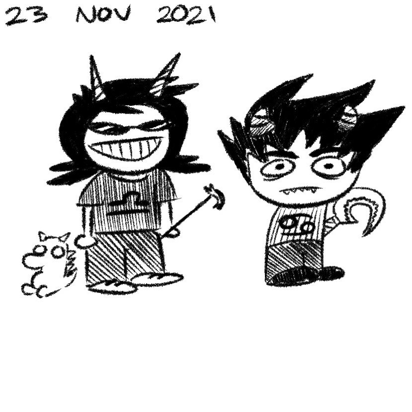 I used to be active a lot on early to mid 2010âs tumblr and itâs been weird seeing all the new franchises and fandoms become popular and the fan art that comes with it. Iâm really happy for all the people who get inspired to make art and are appreciating new media, but as someone whoâs been self conscious about making and posting fan art since even back then, Iâve realized that no matter what kind of fan art you make or what fandom youâre a part of⦠itâs all cringe! Making fan art and expressing your appreciation of media is allowing yourself to be vulnerable and sharing those feelings with others for better or worse. You might draw characters weird or write some really odd fan fiction, but thatâs you being vulnerable and without your vulnerability, you wouldnât be making art that means as much as it does to you. Thatâs why Iâve decided to be cringe! I drew Terezi and Karkat from memory and it bothers me slightly that I probably drew them wrong but these characters meant a lot to me in middle school and Iâm gonna let myself enjoy that even if people think its cringe. Everything is cringe so letâs just be as cringy as we want to be!