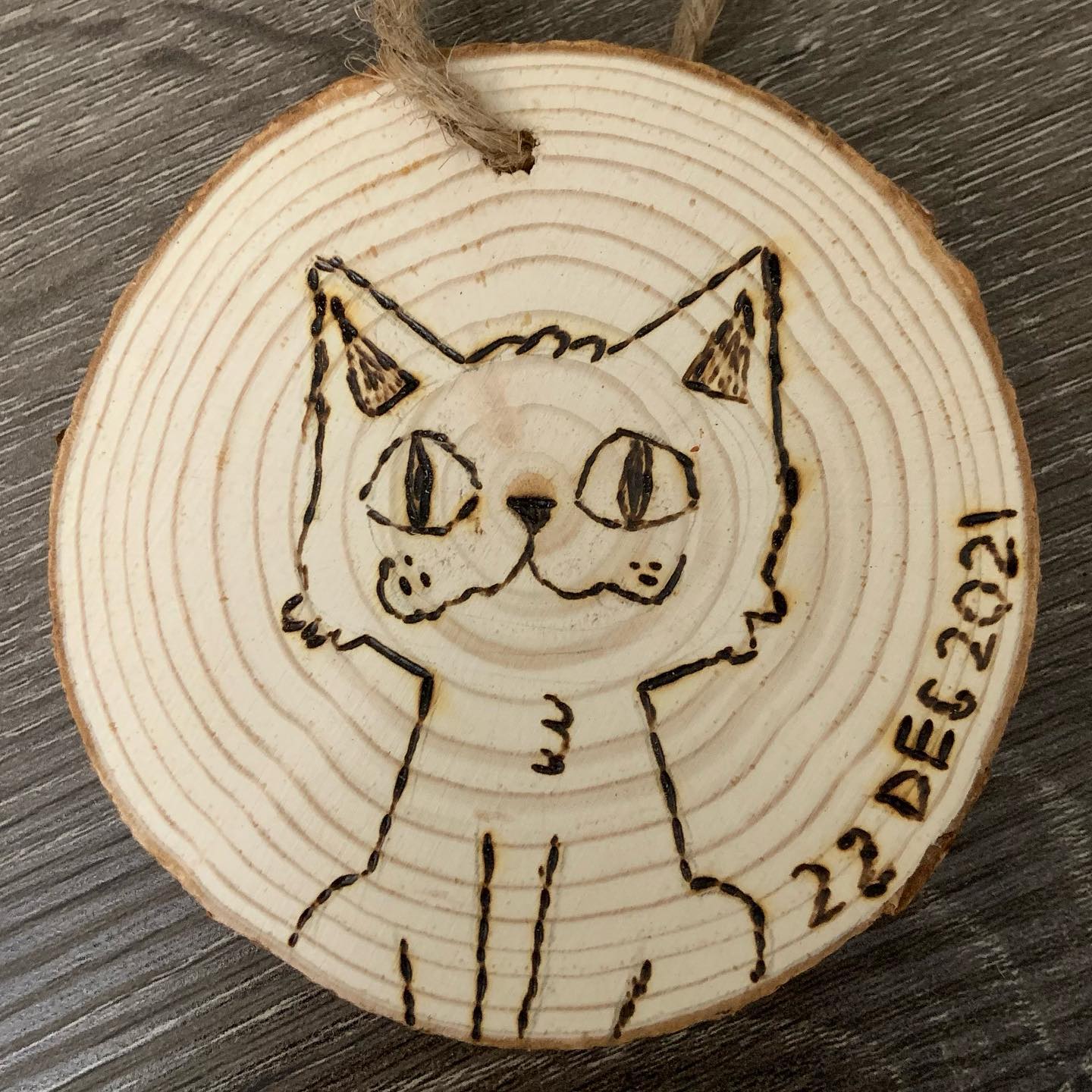 Make sure to remove the string before wood burning or you might burn it!!!