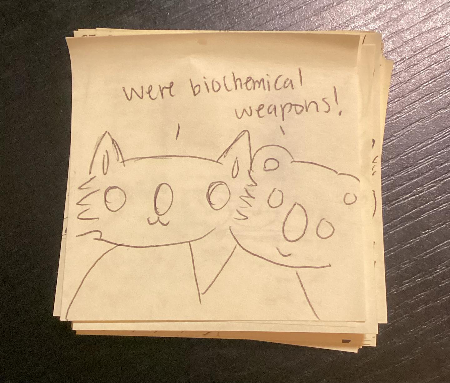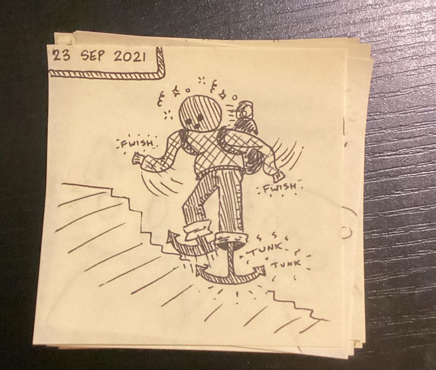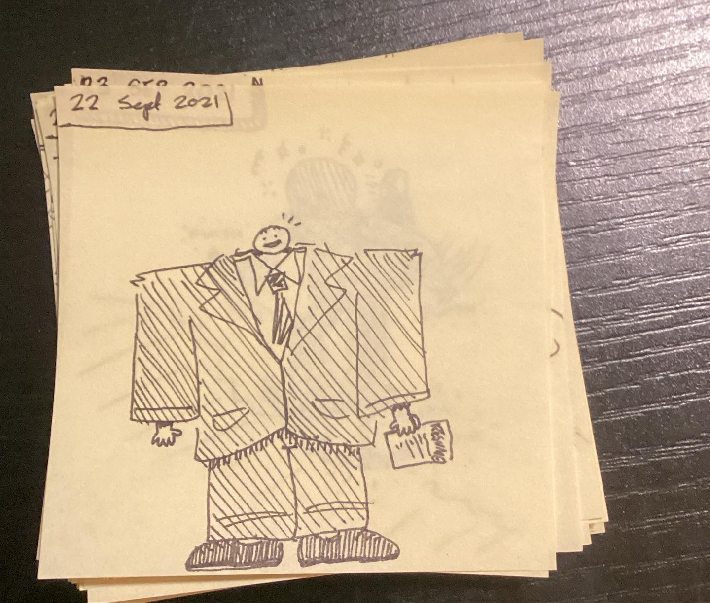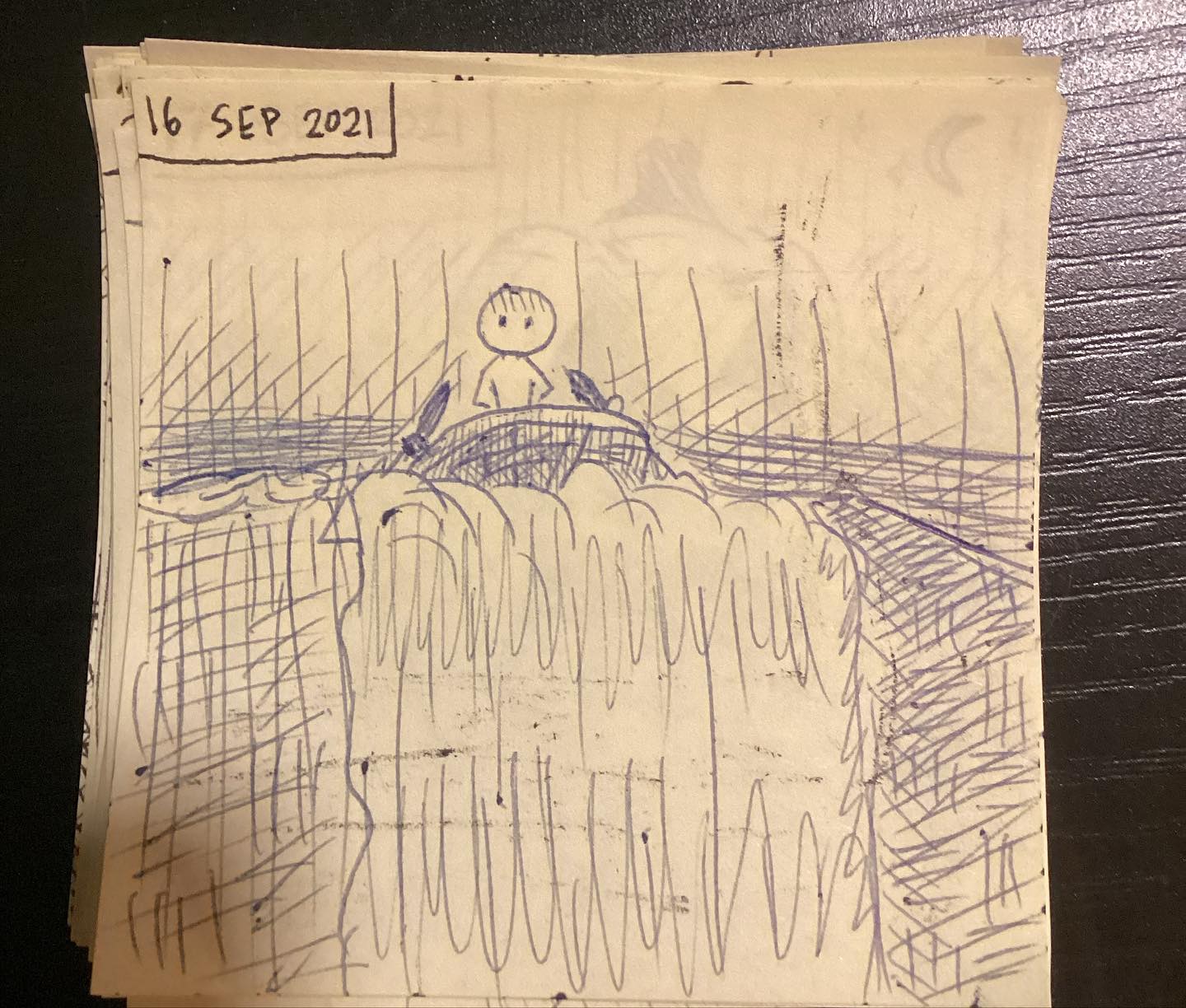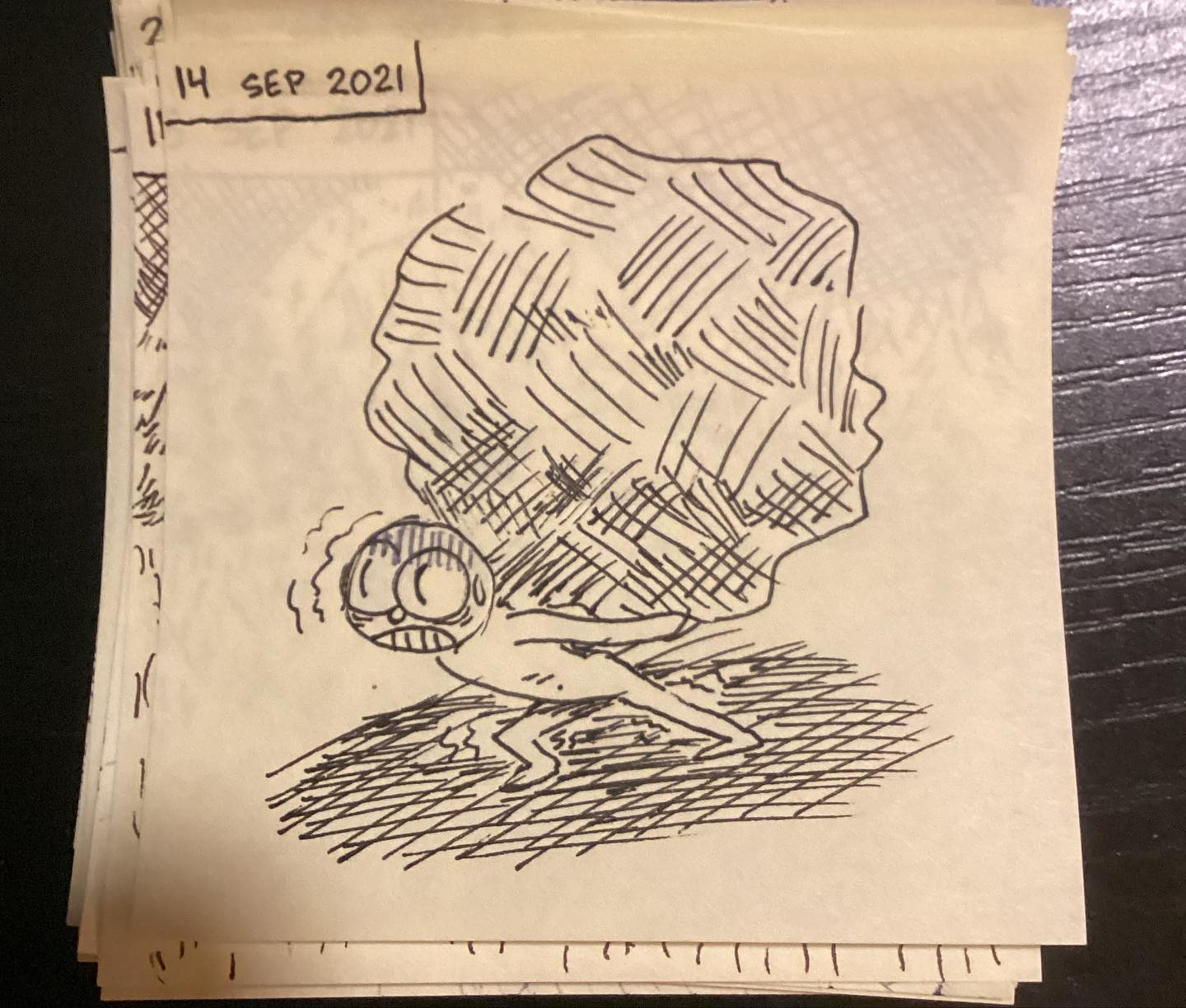 2021 September 13-23 You might remember some of these from earlier posts, but this past year I kept a wall at my work desk where I tried drawing a sticky note whenever I was there, and so now I will post them all for you all at once!