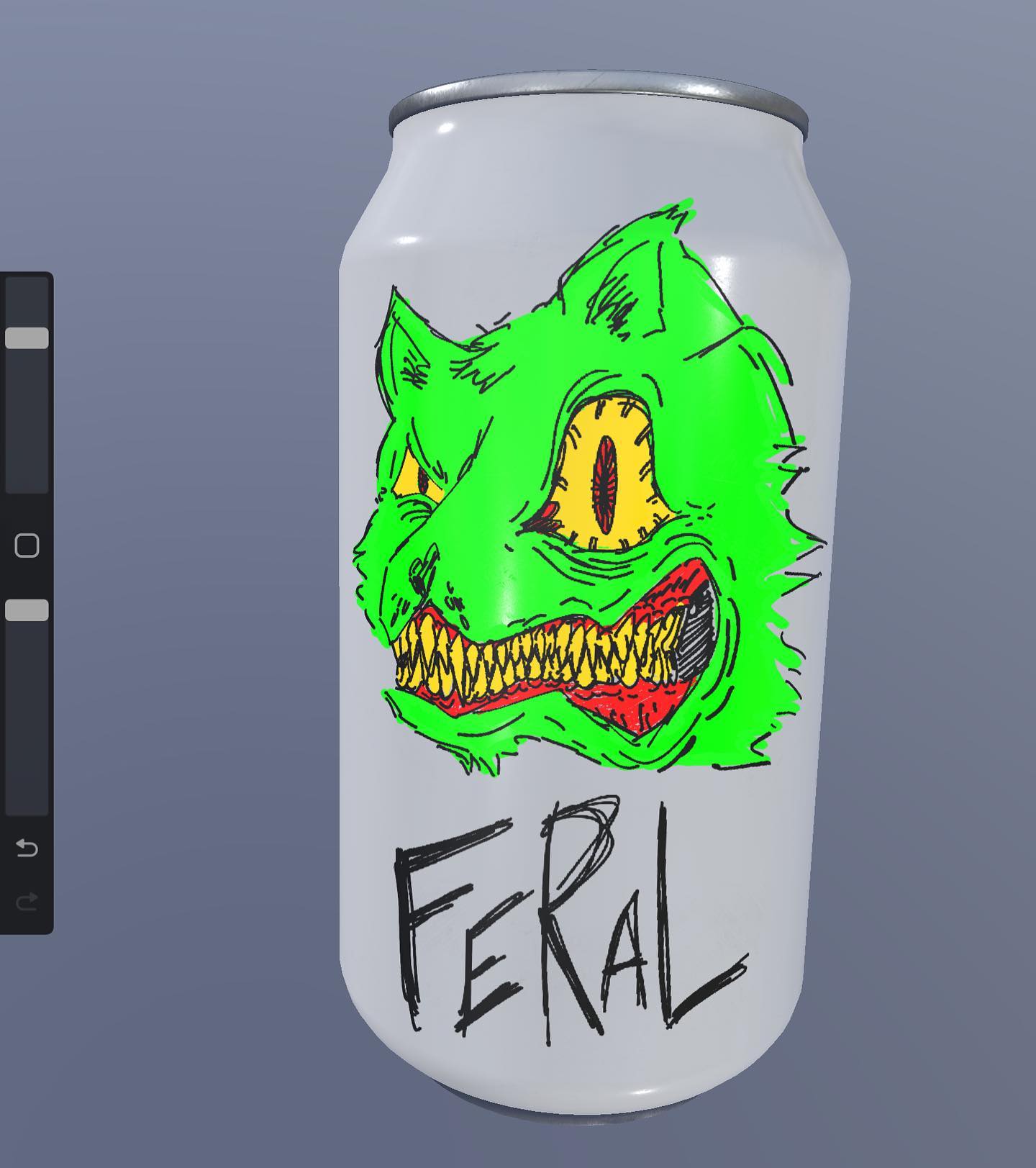 @acornboots and i made it a goal for this year to design cans for a local brewery in Tulsa! i felt inspired today so this is just some rough concept for a crAAAAZY (imaginary) alcoholic beverage named Feral. I donât draw wolves much but WOAH is it CRAZY