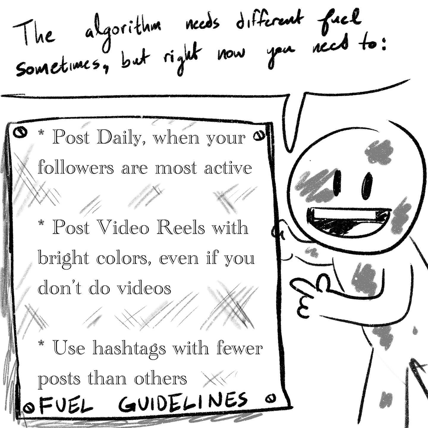 Talking about the starts whispering AL GORE IT THEM stops whispering today. To avoid burn out Iâve been trying to just treat my instagram page as a place to drop my art and whoever comes by can look at it. Lately Iâve been wanting to make my presence larger since Iâve been wanting to try selling my art. (I also feel a little insecure that other artists may not take me as seriously if i donât have as many followers ðð) So hereâs this comic with advice given to me by @acornboots and our awesome friends, they all know how to use instagram way better than I do ð . I hope you enjoy and also Iâm writing this at midnight but Iâm going to keep this in my drafts until my lunch break since I see most people are active at noon in my time. This feels less genuine than I usually feel comfortable with but letâs see how the path to popularity does!