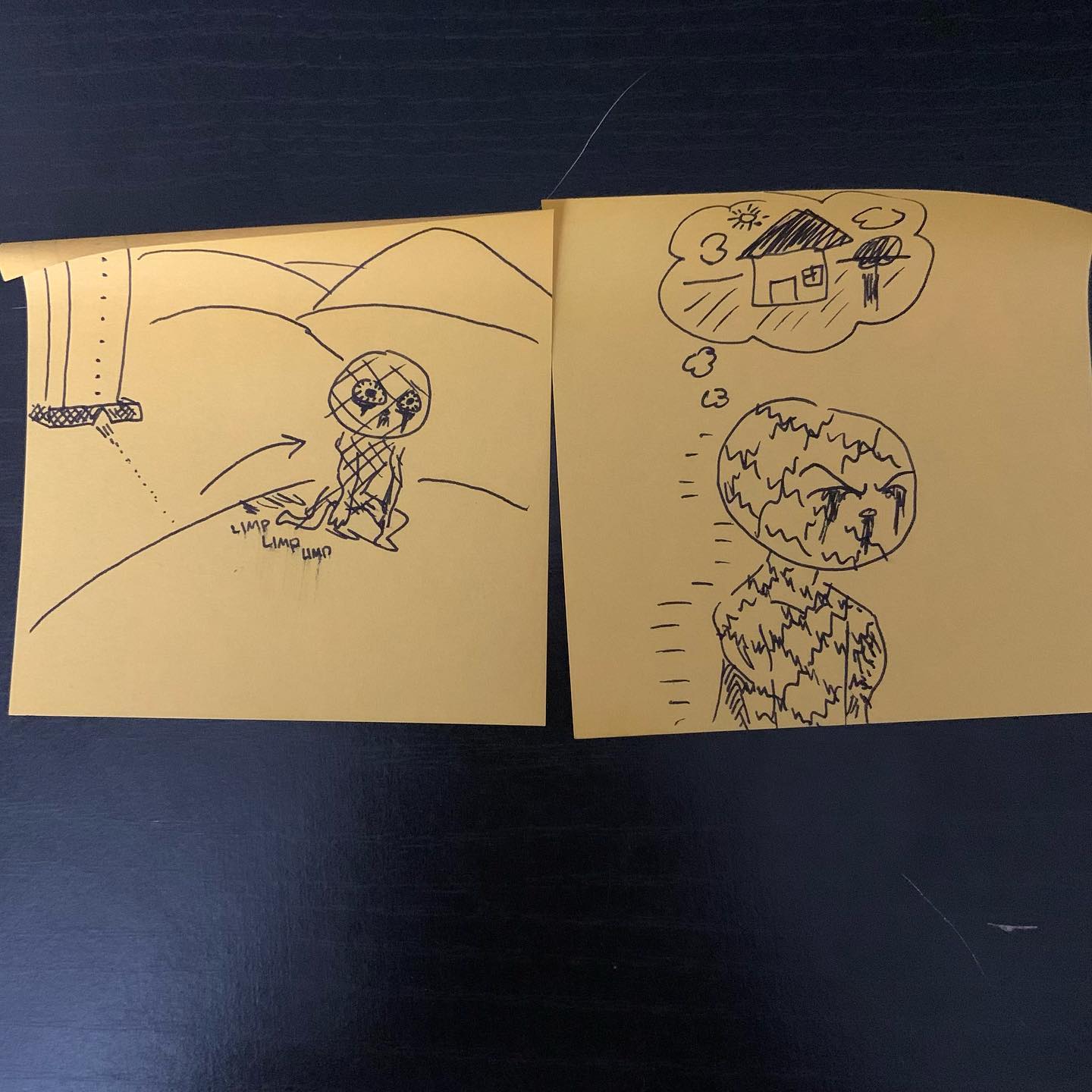 i havent been wanting to post my darker themed content but its what i got for the time being and some people have encouraged me to post dark stuff anyways so hereâs this comic i made where i didnt let myself redo or throw away any panels. I made the title panel last but the rest of it i calls back to my old art. The comic probably doesnt convey the intended message too thoroughly but its just about the feelings of wanting to return to a place or time that felt safer but once you get there you realize everythingâs changed and youâll never get to see that safe place again except in your memories.