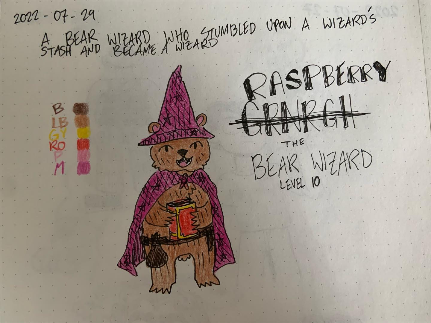 Raspberry the Level 10 Bear Wizard! One day, Raspberry was a simple bear perusing what had been left behind by a seemingly powerful wizard. The moment that Raspberry opened the wizardâs book with their snoot, they knew they were destined for wizardry.