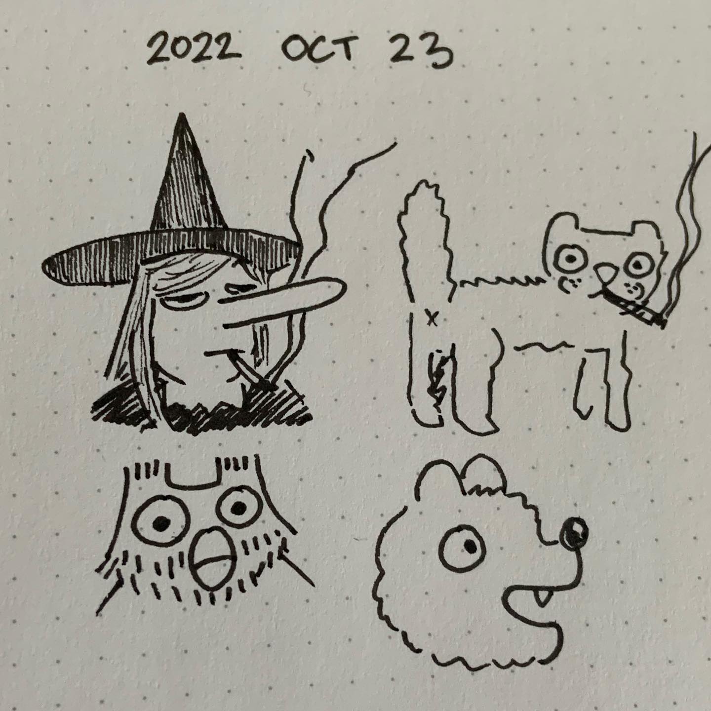 Inktober Day 23 - Todayâs spooky pals are Megg, Mogg, and Owl! (Guest starring Werewolf Jones) Iâll never forget when one of my high schoolâs librarians lent me his signed copy of @simon.hanselmann âs Megahex. (I still smell the lipstick in the bookâs covers whenever I see these characters.) I thought, oh an adult comic? Iâve read Watchmen and Akira, I can handle it⦠I donât think Iâve read another comic that is as ridiculous yet genuine as this series is. Simon Hanselmann had made some of the most repulsive and shocking comics Iâve seen but they still feel like they have more substance than the other shock stuff Iâve read. Anyways go check the comics! And you can see the new cartoon on the Paloni Show on Hulu that just came out. Great stuff!