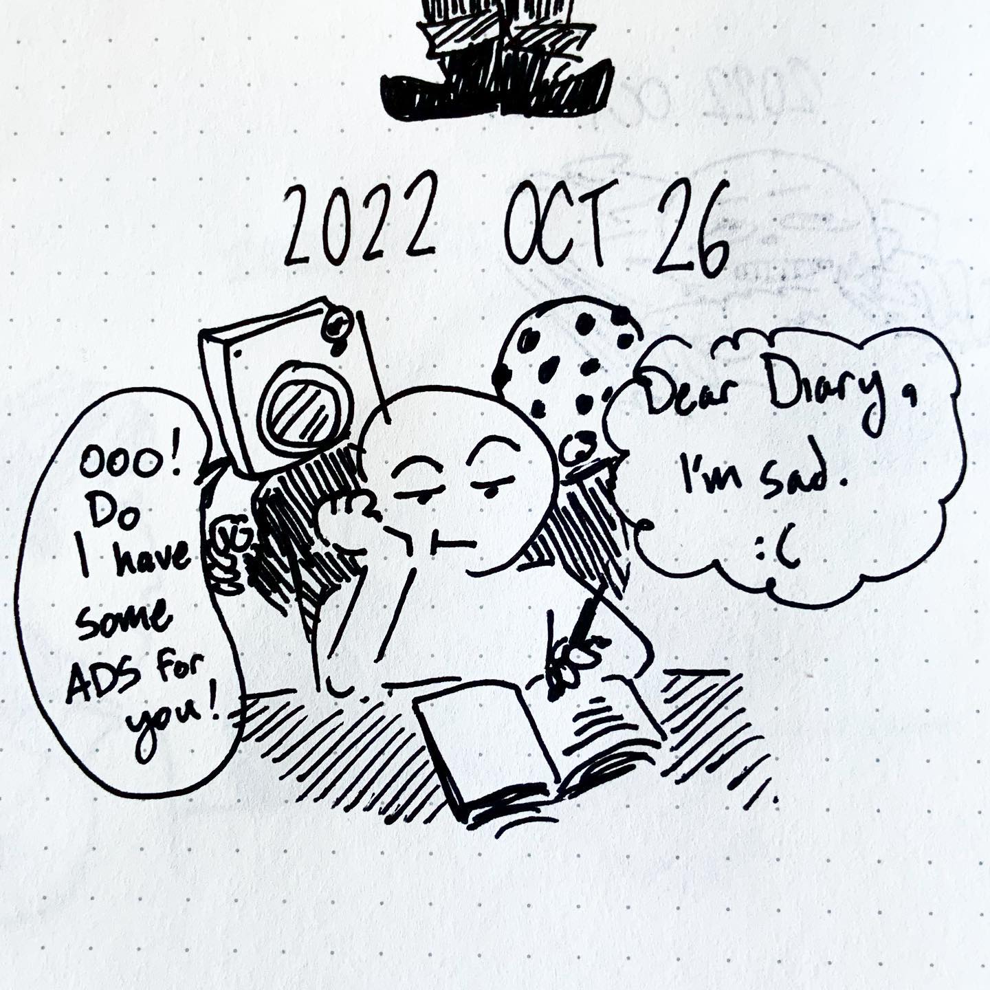 Inktober Day 26 - I try my best to maintain privacy but no matter it feels like my behaviors and habits both online and offline are dissected by algorithms and thrown up in my face to where if it feels like I canât share or do anything without some mega corporation reminding me that they know what Iâm thinking and doing. We canât unplug anymore weâre fully embedded in this.